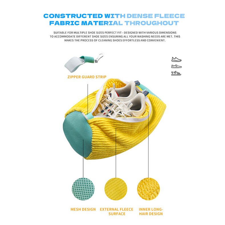 Anti - damage and protection design: It has a 360° anti - deformation structure to avoid tumbling and collision of shoes in the washing machine and effectively maintain the shoe shape; It is equipped with a safety zipper (many are hidden or with elastic protective cover styles) to prevent the zipper from scratching the washing machine drum and also avoid the bag mouth from loosening during washing. Some also have hanging rings, which are convenient for hanging after washing or during storage.