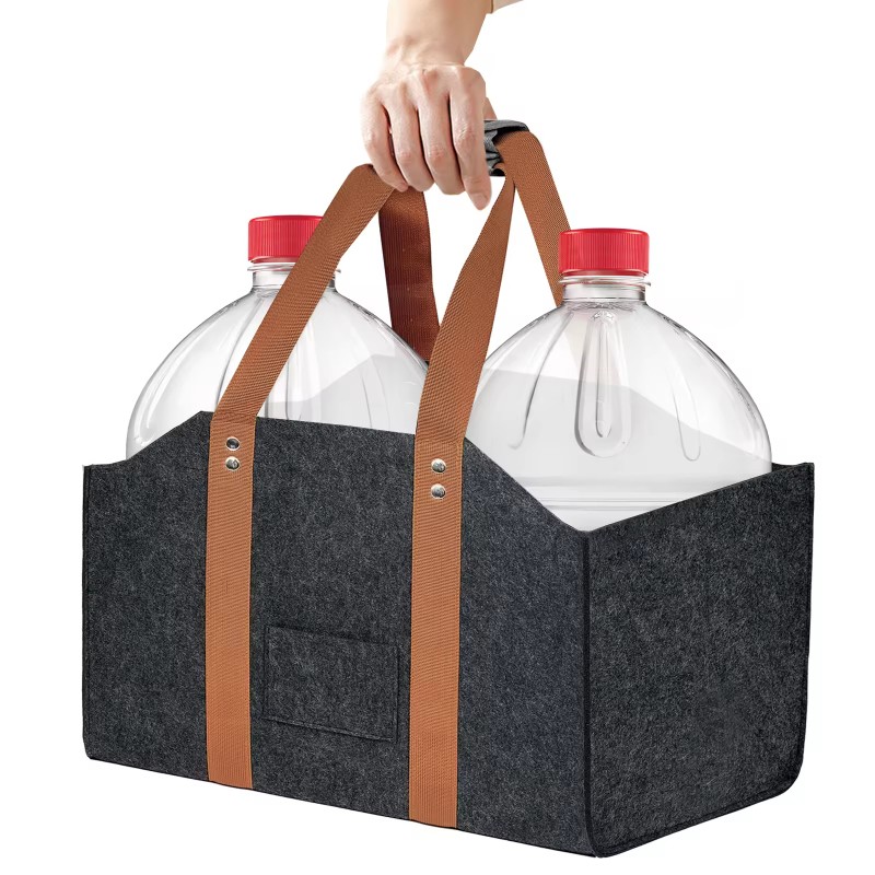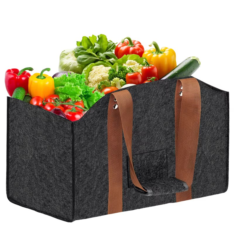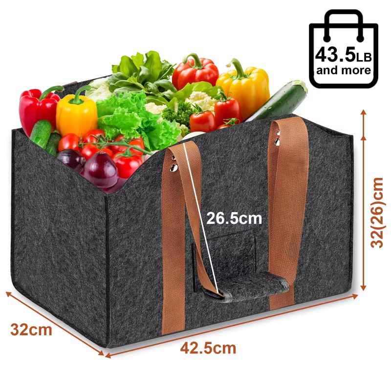 Felt Basket FirewoodThis is a felt storage basket with the following features: Material and Appearance: The main body is made of dark gray felt fabric, paired with brown webbing handles, presenting a simple and elegant overall style. Practicality: It has a large capacity and can store various items. As shown in the picture, it is used to store a variety of fresh vegetables. It is also suitable for scenarios such as shopping and home clutter organization. The handle is sturdy and easy to carry, and there is also a felt side pocket for placing small items. Durability: The felt material is strong and wear-resistant, capable of bearing a certain weight. The connection between the webbing and the basket body is firm, making it suitable for frequent daily use. Material:polyester felt functional design:Foldable Feature:Eco-Friendly, Folding Type:Storage Baskets weight tolerance:<±1%(Include) dimensional tolerance:<±1cm model number:HF-A475 Use:Neatening/Storage place of origin:Hebei, China brand name:Youngshoots Product name:felt basket Certification:BSCI Thickness:3mm/customized Color:dark grey or customized Logo:laser, silk printing, woven label Usage:clothes, toys Type:storage basket MOQ:500pcs Sample time:3-7 days