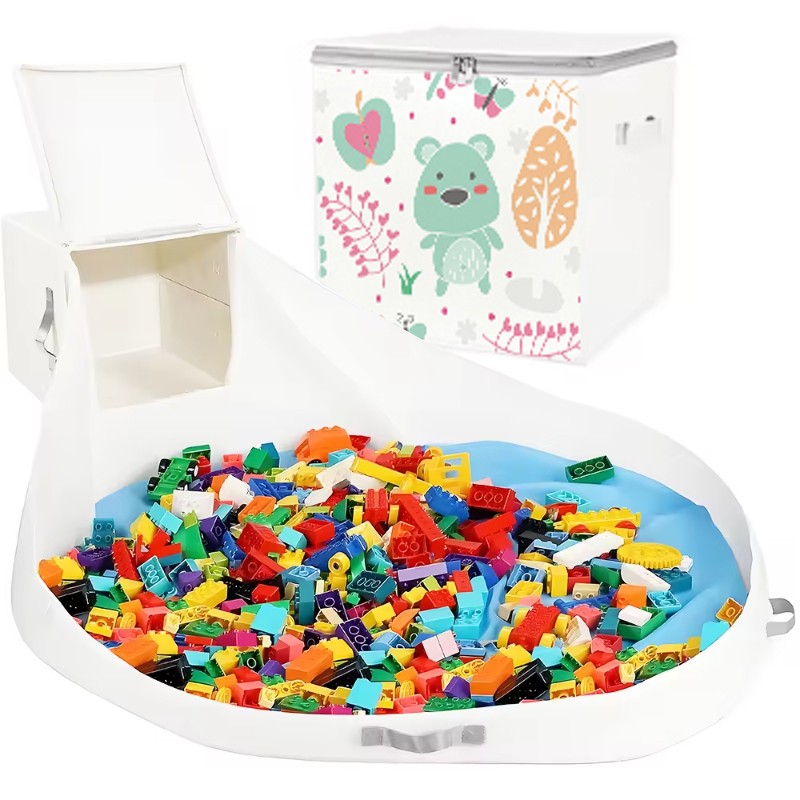 Introducing our Kids Toy Storage Box with Play Mat — the perfect blend of fun and functionality.Smart 2-in-1 DesignSimply open the box and unfold the soft play mat — a spacious play area for building blocks, cars, or dolls. When playtime is over, just pull the drawstring and watch all the toys slide back into the box in seconds. Clean-up made easy!